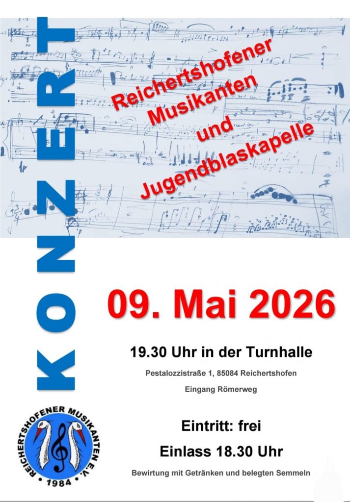 Wir, die Reichertshofener Musikanten und die Jugendblaskapelle laden Sie herzlich zu unserem Muttertagskonzert ein.